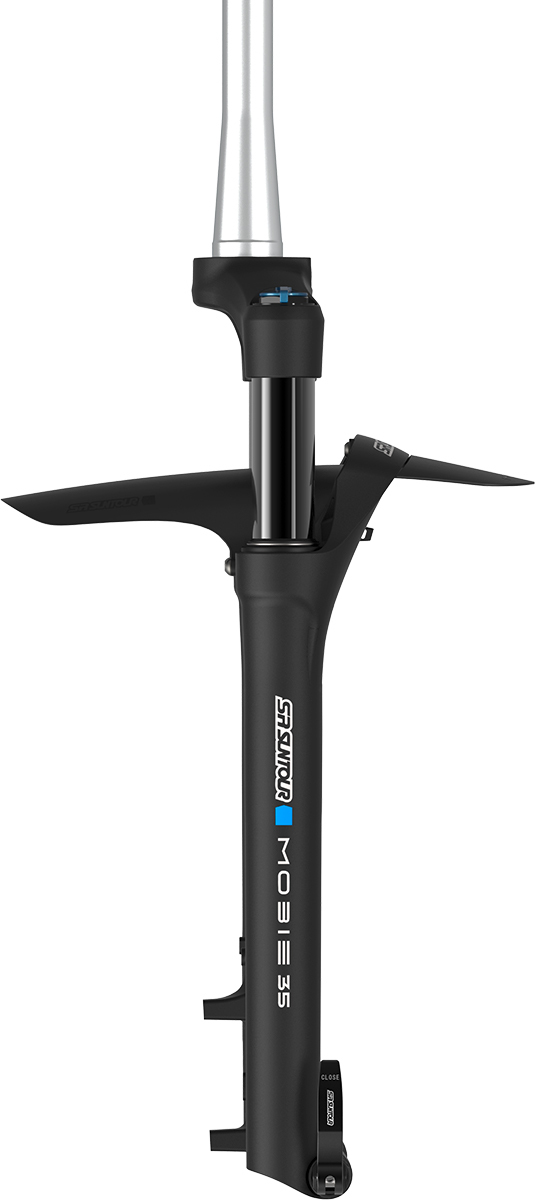 Combine the stability and damping performance of a mountain bike fork, and a polished modern design, and you have MOBIE. Nearly every urban setting is seeing a steep rise in bicycling traffic- economical, environmental, and fun, these commutes only get better. The MOBIE is discreetly a powerful eBike rated urban fork. Featured with 32mm, 34mm and 36mm stanchions for control and stability, along with air and coil options. Comes in all the popular urban wheel sizes, including the new 20" & 24" versions for the newest cargo and mobility bikes. For added performance, we include direct brake mounts and a 15x100mm QLOC axle. Integrated fender and light mounts complete the package as so you can ride in any weather at any time of day. The e-Experience is enhanced mobility.
