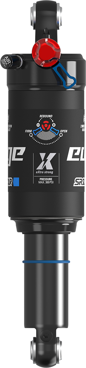 From high-speed cross-country racing to the challenges of technical trail riding, you demand suspension that delivers top-tier damping performance for both efficiency and comfort. Enter the EDGE, a purpose-built shock designed for lightweight and fast XC performance. With adjustable compression damping and rebound it offers a custom-tuned, controlled ride no matter the terrain. The „X“ stands for reinforced performance. While the EDGE line of shocks remains the go-to for short to mid-travel bikes, the new EDGE X is engineered to meet the growing demands of modern full-suspension eMTBs. With a complete design overhaul, it features a redesigned shaft for increased strength and enhanced sliding behavior which translates to excellent small-bump compliance, even under heavy loads. A larger negative air chamber improves top-end suppleness, delivering that plush initial feel while maintaining support deeper into the travel. And while comfort is front and center, efficiency remains king. Gone are the days of the full lockout XC setup. The EDGE X introduces a firm mode switch, which maintains traction and comfort while maximizing pedaling efficiency, exactly what modern trail and eMTB riders demand.