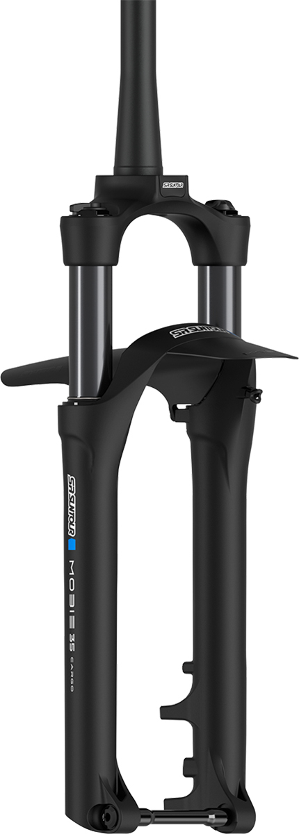 MOBIE stands for mobility without any compromises. The new MOBIE35 CGO is the newest urban mobility solution for the longtail bike market. The MOBIE35 CGO is a 27.5" cargo fork built on a chassis of 35 mm steel stanchions with features including a lamp mount crown, ABS mounts and long fender mounts for all of your mobility solutions. Built for everyday cargo usage, this fork will handle up to 200 kgs of system weight. The MOBIE35-CGO is adaptable to accept even wider tires on 26" wheels as well. With an adjustable air spring and 2-position compression adjustment it is adaptable to whatever loads you may be carrying.
