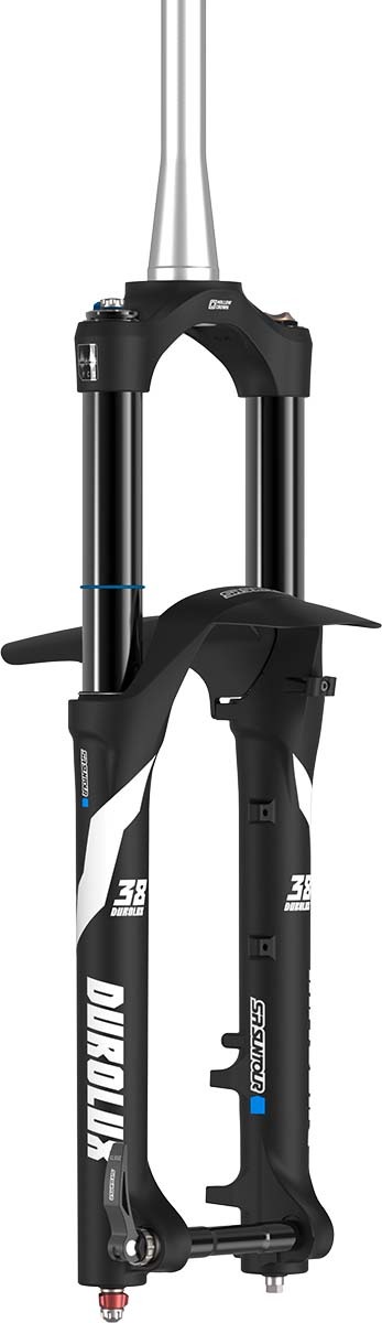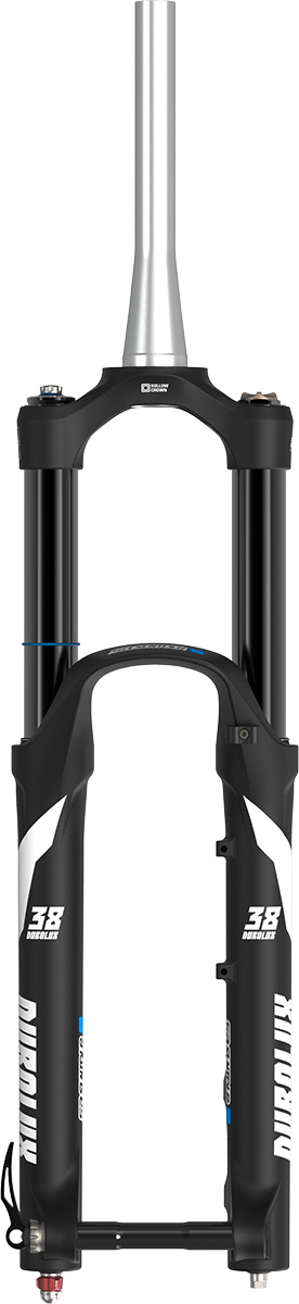 We’ve taken everything you love about the DUROLUX and made it bigger and badder! The new DUROLUX38 is ready to take on even the most hectic lines with 38mm stanchions for added stiffness and even more precision. The DUROLUX38 is the choice for freeride, gravity riding and the most demanding enduro cour ses and can handle anything you can throw at it. Whether you’re competing against the clock or against the terrain the DUROLUX38 will instill all the confidence needed to get you safely and smoothly down the trail and with our legendary durability you can turn around and do it again and again! Designed tough and smart with A7000 stanchions and hollow forged crown, QSP ports, an integrated fender, fully sealed and serviceable R2C2 and RC2 PCS dampers and extra volume spacers included for easy spring curve adjustment. Our tradition of product evolution brings the DUROLUX into a new era with the Air EQ system, perfectly equalizing the rider‘s weight to the spring curve resulting in exact positioning and support.
