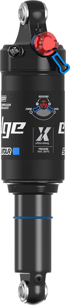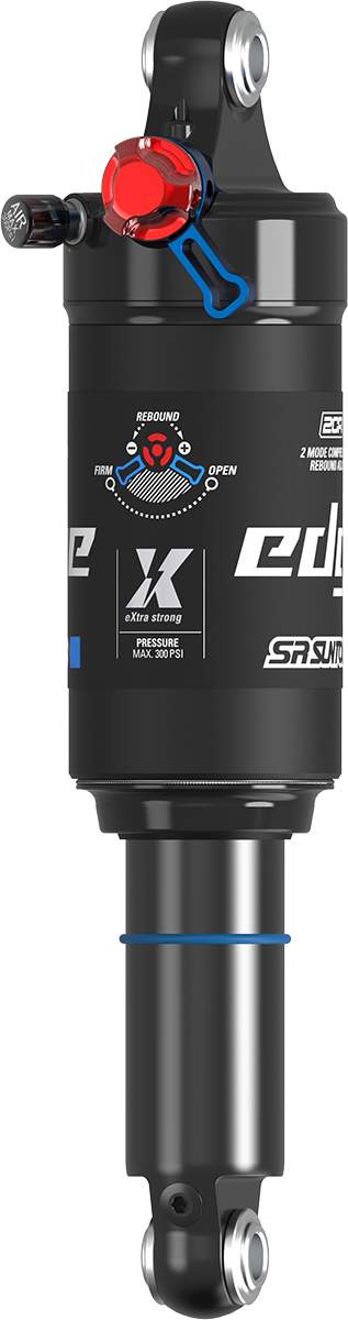 From high-speed cross-country racing to the challenges of technical trail riding, you demand suspension that delivers top-tier damping performance for both efficiency and comfort. Enter the EDGE, a purpose-built shock designed for lightweight and fast XC performance. With adjustable compression damping and rebound it offers a custom-tuned, controlled ride no matter the terrain. The „X“ stands for reinforced performance. While the EDGE line of shocks remains the go-to for short to mid-travel bikes, the new EDGE X is engineered to meet the growing demands of modern full-suspension eMTBs. With a complete design overhaul, it features a redesigned shaft for increased strength and enhanced sliding behavior which translates to excellent small-bump compliance, even under heavy loads. A larger negative air chamber improves top-end suppleness, delivering that plush initial feel while maintaining support deeper into the travel. And while comfort is front and center, efficiency remains king. Gone are the days of the full lockout XC setup. The EDGE X introduces a firm mode switch, which maintains traction and comfort while maximizing pedaling efficiency, exactly what modern trail and eMTB riders demand.
